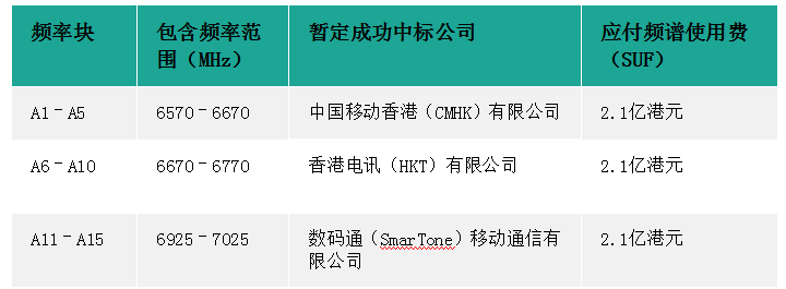 中國(guó)香港完成6/7GHz頻段的無(wú)線頻譜拍賣:https://www.ofca.gov.hk/en/news_info/press_releases/index_id_2365.html
