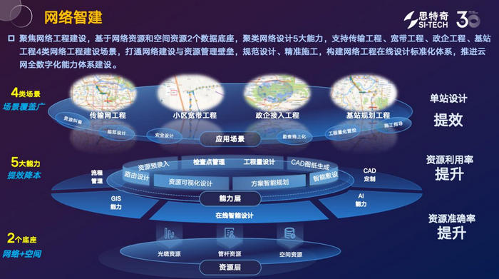 當(dāng)前,運(yùn)營商網(wǎng)絡(luò)工程建設(shè)領(lǐng)域痛點(diǎn)突出,“資源數(shù)據(jù)割裂、設(shè)計(jì)標(biāo)準(zhǔn)不統(tǒng)一、施工精準(zhǔn)度不足”的問題已成為行業(yè)普遍困擾。傳輸、寬帶、政企、基站四大類工程場景需求差異顯著,而傳統(tǒng)設(shè)計(jì)依賴人工勘察,不僅耗時(shí)耗力,還易因數(shù)據(jù)誤差引發(fā)資源錯(cuò)配,直接影響網(wǎng)絡(luò)建設(shè)質(zhì)量與后續(xù)運(yùn)維效率。針對這一核心痛點(diǎn),思特奇“網(wǎng)絡(luò)智建”解決方案以物理資源與空間資源為雙數(shù)據(jù)底座,聚合網(wǎng)絡(luò)設(shè)計(jì)五大核心能力,構(gòu)建全流程自動(dòng)化管控體系,為四類工程場景提供標(biāo)準(zhǔn)化、智能化支撐。