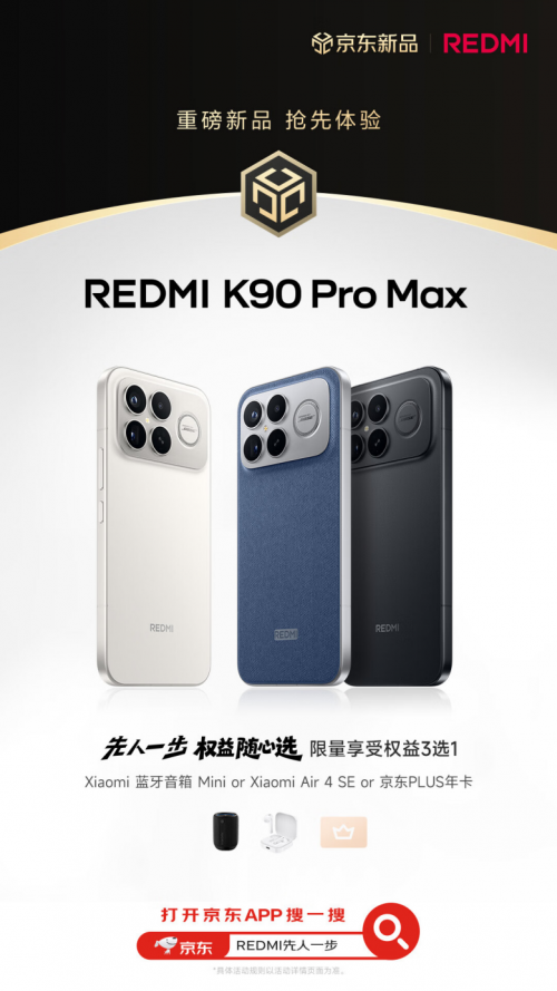 REDMI K90系列將于10月23日發(fā)布,引發(fā)眾多消費(fèi)者關(guān)注。為帶給消費(fèi)者更多權(quán)益,京東攜手小米打造先人一步加速換新計(jì)劃,先人一步下單REDMI K90 Pro Max 16GB+512GB可享限量權(quán)益隨心選,包括Xiaomi藍(lán)牙音箱mini、Xiaomi Air 4 SE、京東PLUS年卡,三項(xiàng)權(quán)益可任選其一。京東11.11火熱進(jìn)行中,即日起消費(fèi)者可到京東APP搜索“REDMI先人一步”進(jìn)入活動(dòng)頁(yè)面預(yù)約新機(jī),方便發(fā)布會(huì)后第一時(shí)間下單。