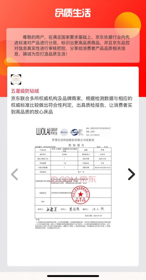 值得關(guān)注的是,消費者在選購羽絨被時,還常面臨清洗困難、容易鉆絨、品質(zhì)難辨等實際問題。為解決這些痛點,京東11.11期間特別聯(lián)合博洋、富安娜、羅萊等品牌推出“買即送三年洗護(hù)服務(wù)”,徹底解決用戶清洗保養(yǎng)的后顧之憂。對于消費者最為關(guān)心的鉆絨問題,京東聯(lián)合水星家紡、富安娜、羅萊家紡、博洋、SIDANDA等10余家品牌,共同推出羽絨被“五星級防鉆絨”安心品質(zhì)保障。每款認(rèn)證產(chǎn)品均可掃碼查驗真實檢測證書,讓消費者買得放心、用得安心。