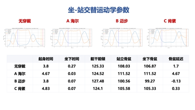 (圖注:幾款外骨骼的“坐-站”交替運(yùn)動(dòng)學(xué)參數(shù)表)