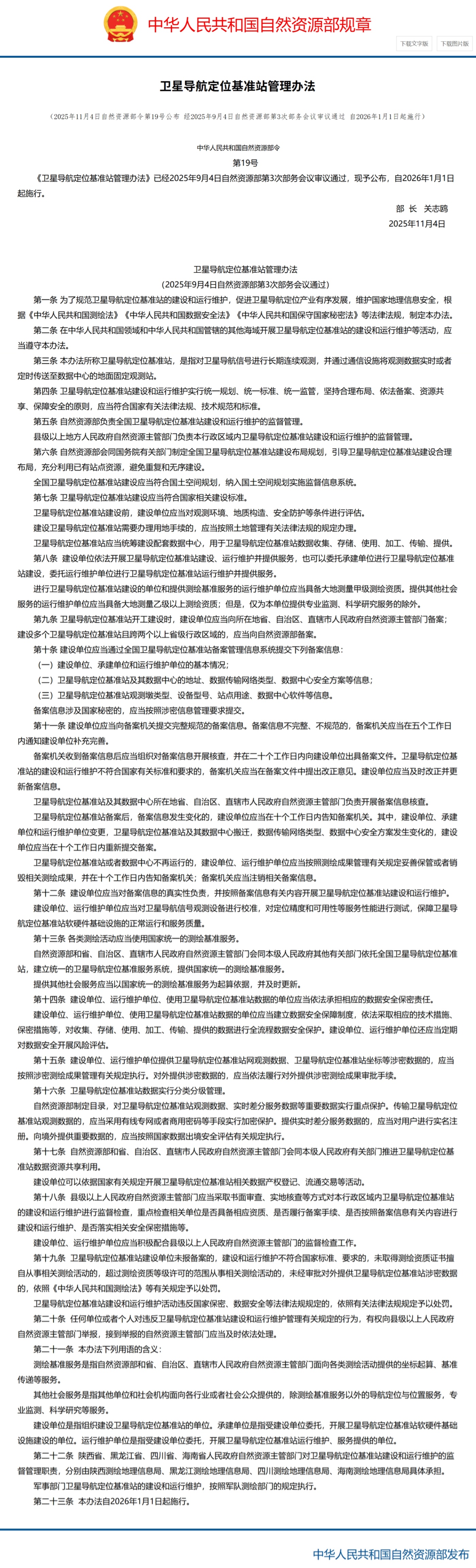全國(guó)衛(wèi)星導(dǎo)航定位基準(zhǔn)站將被納入統(tǒng)一監(jiān)管,明年 1 月起實(shí)施
