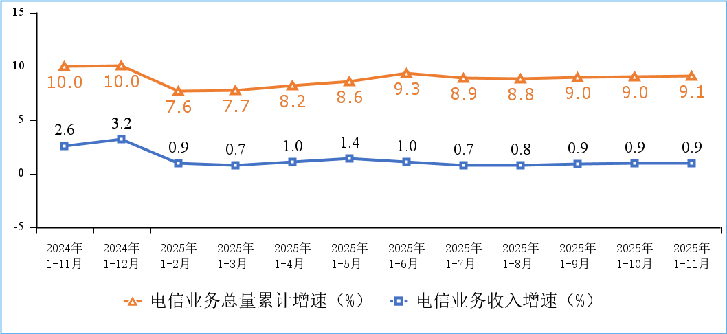 1-11月我國電信業(yè)務(wù)收入累計(jì)完成16096億元 同比增長0.9%