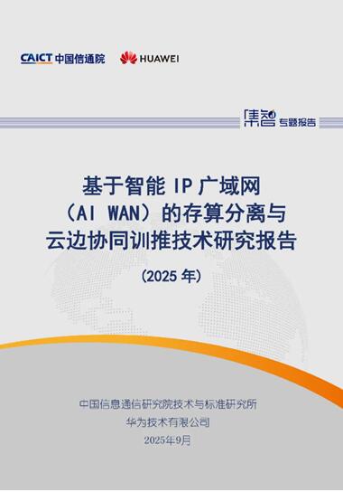 中國(guó)信通院標(biāo)準(zhǔn)所聯(lián)合發(fā)布《基于智能IP廣域網(wǎng)(AI WAN)的存算分離與云邊協(xié)同訓(xùn)推技術(shù)研究報(bào)告(2025年)》