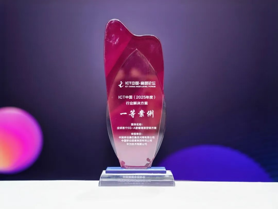 河南移動聯(lián)合華為全球首創(chuàng)5G-A套餐"Try&Buy"精準(zhǔn)營銷方案斬獲ICT中國(2025年度)一等獎