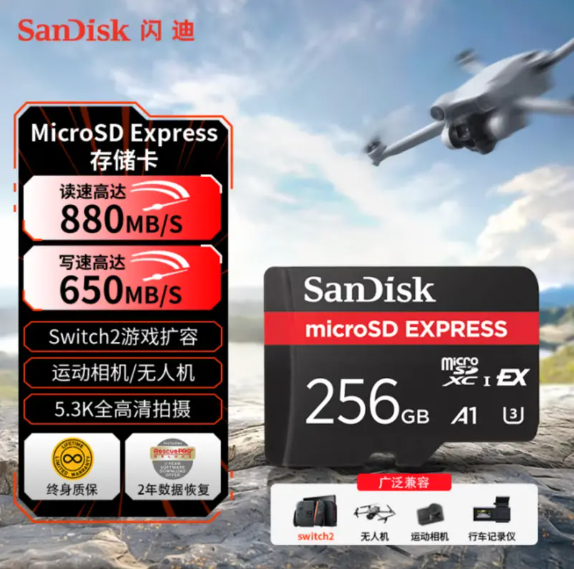 此外,產(chǎn)品提供兩年的RescuePRO Deluxe文件恢復(fù)服務(wù),搭配終身有限質(zhì)保,讓玩家使用時(shí)無后顧之憂,盡情沉浸于游戲世界。值得一提的是,除了游戲場景,SanDisk閃迪的microSD Express存儲卡還適用于無人機(jī)、運(yùn)動(dòng)相機(jī)、行車記錄儀等設(shè)備,憑借強(qiáng)勁性能為多元場景提供可靠存儲支持。