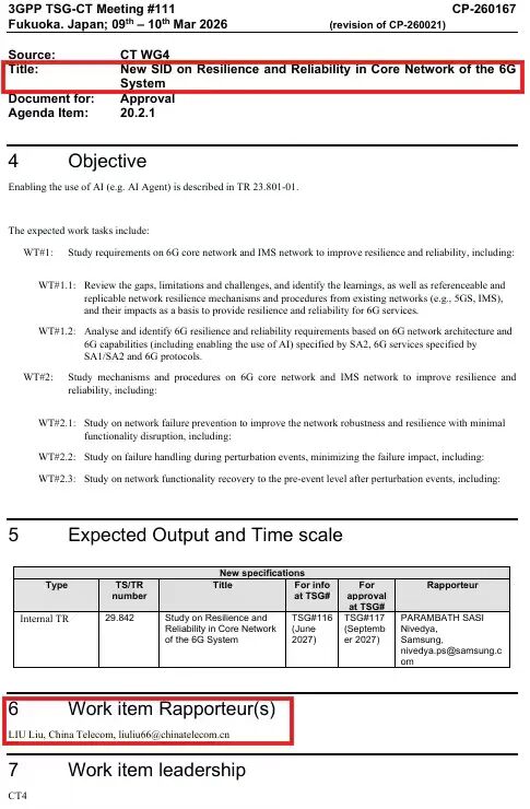 近日,3GPP核心網(wǎng)與終端技術(shù)規(guī)范組(TSG CT)第111次全會在日本福岡舉行。會上,由中國電信牽頭的“6G系統(tǒng)彈性和可靠性研究”項目成功獲批立項。該項目由中國電信研究院核心網(wǎng)技術(shù)研究所90后青年骨干劉柳擔(dān)任報告人,是中國電信在3GPP CT領(lǐng)域牽頭的首個6G網(wǎng)絡(luò)標(biāo)準(zhǔn)項目,也是本次會議首批通過的四個6G項目之一。
