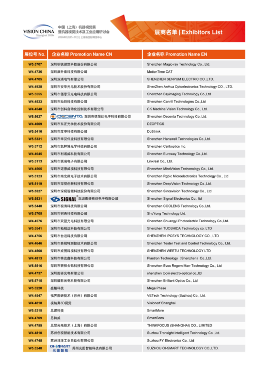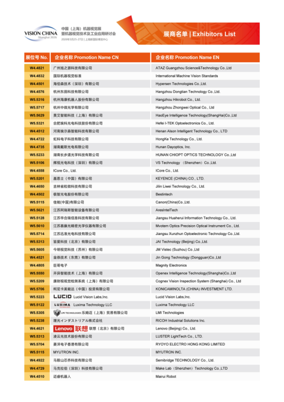Vision China 2026(上海)展商名單