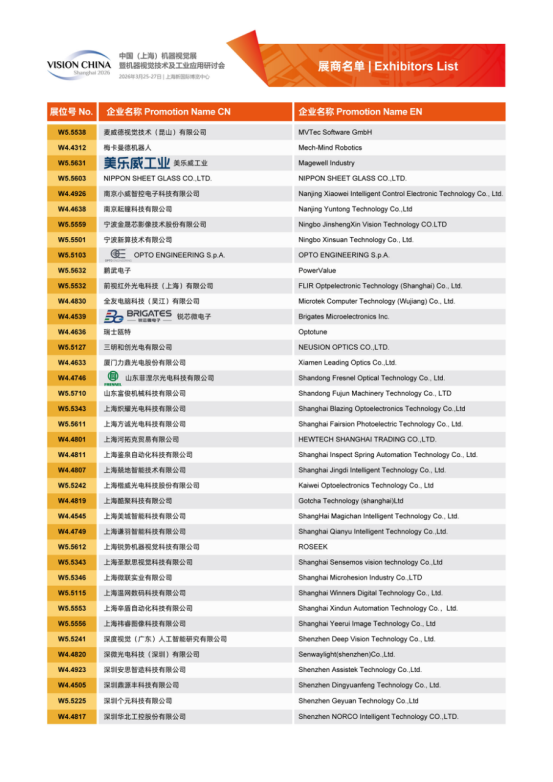 Vision China 2026(上海)展商名單及展位圖公布!