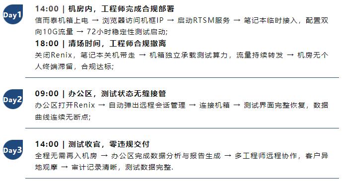 RTSM價(jià)值:白天配置啟動,夜間機(jī)箱自主運(yùn)行,次日遠(yuǎn)程驗(yàn)收,合規(guī)前提下完成72小時壓力驗(yàn)證。