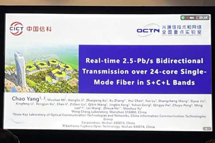 近日,中國信科集團光通信技術(shù)和網(wǎng)絡(luò)全國重點實驗室聯(lián)合鵬城實驗室、烽火藤倉光纖科技有限公司,在超大容量實時光傳輸領(lǐng)域取得重要進展。最新論文《Real-time 2.5-Pb/s Bidirectional Transmission over 24-core Single-Mode Fiber in S+C+L Bands》被國際頂級光通信會議OFC(2026)接收,獲評為“Top Scored Paper”,并獲邀在JLT雜志上撰寫專題論文。該工作是團隊在“超大容量、超高速率、超長距離”傳輸方向上長期研究積累的成果,也是中國信科集團在連續(xù)三年入選“中國信息通信領(lǐng)域十大科技進展”基礎(chǔ)上,實現(xiàn)的又一重要突破與技術(shù)延續(xù)。