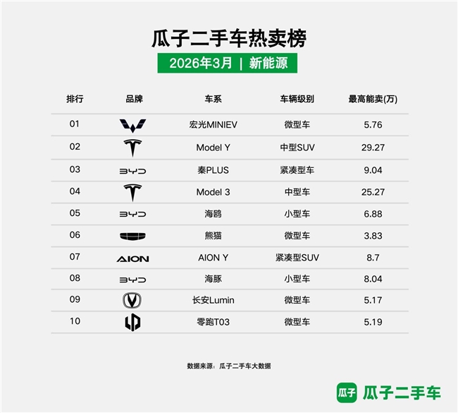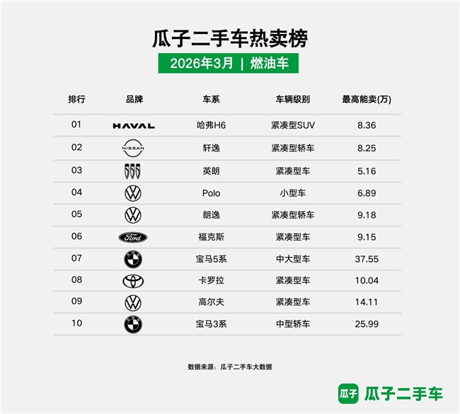 瓜子二手車(chē)3月熱賣(mài)榜:經(jīng)濟(jì)代步車(chē)成交領(lǐng)跑,車(chē)主直連終端買(mǎi)家可多賣(mài)10%