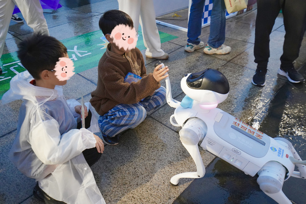 球迷們與機(jī)器人、機(jī)器狗互動(dòng)