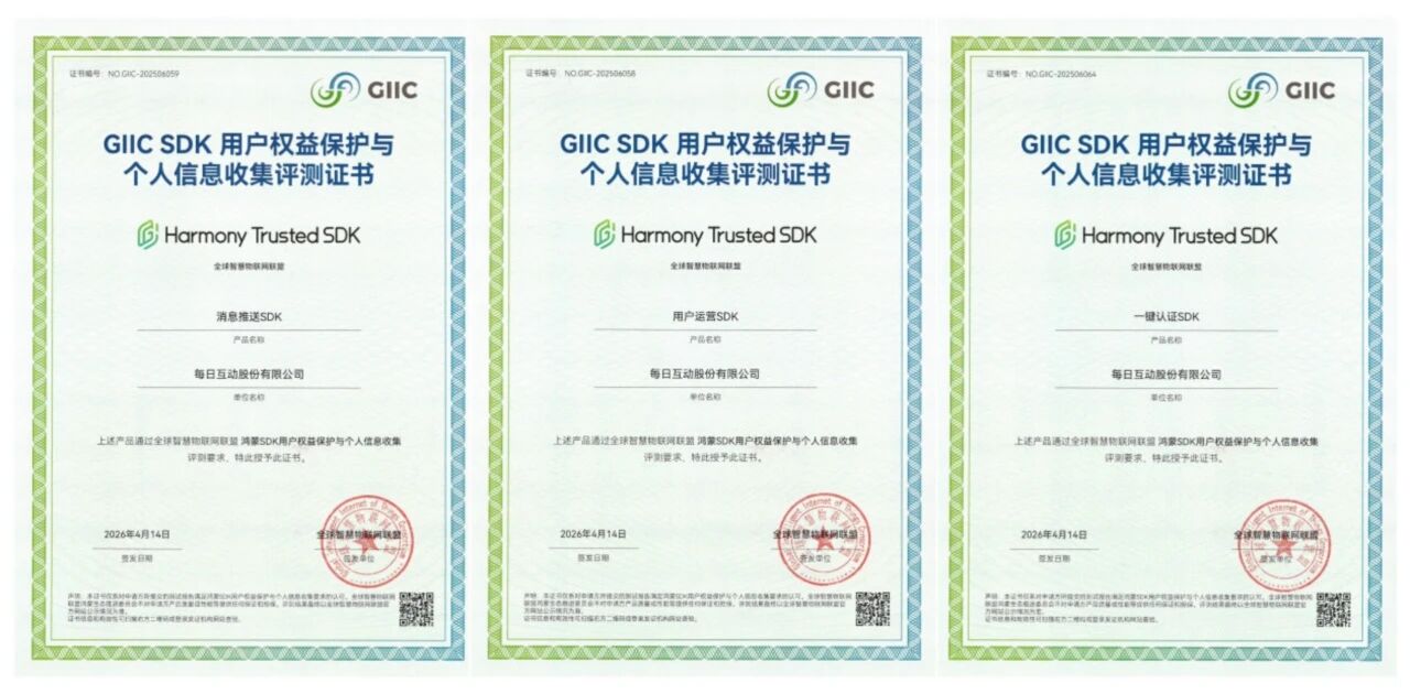 4 月14 日,由全球智慧物聯(lián)網(wǎng)聯(lián)盟鴻蒙生態(tài)推委會(huì)主辦的“質(zhì)領(lǐng)未來(lái)・生態(tài)共融”2026鴻蒙SDK交流會(huì)在成都順利召開(kāi)。作為華為鴻蒙生態(tài)的重要合作伙伴,每日互動(dòng)(個(gè)推)受邀出席本次大會(huì),并憑借旗下開(kāi)發(fā)者服務(wù)全棧產(chǎn)品的高質(zhì)量鴻蒙適配與生態(tài)落地成果,榮獲鴻蒙首批SDK評(píng)測(cè)認(rèn)證,同步入選鴻蒙首批64款SDK名單,彰顯了公司在鴻蒙生態(tài)建設(shè)中的領(lǐng)先技術(shù)實(shí)力與核心生態(tài)價(jià)值。