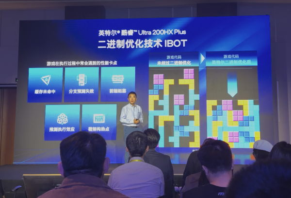 現(xiàn)場(chǎng)伴手禮口袋中多面色彩的魔方則似乎預(yù)示AI高靜游戲本Plus背后的芯片升級(jí)。英特爾在發(fā)布會(huì)現(xiàn)場(chǎng)用俄羅斯方塊來(lái)形象比喻新一代英特爾酷睿Ultra 200HX Plus處理器中二進(jìn)制優(yōu)化技術(shù)(IBOT),高宇將在沒(méi)有優(yōu)化的處理器運(yùn)行情況下,如同胡亂堆砌的不規(guī)則方塊,稱之為“CPU運(yùn)行氣泡”,而空轉(zhuǎn)的CPU并不能產(chǎn)生實(shí)際運(yùn)行效果。通過(guò)IBOT方式優(yōu)化后,可擠出大量氣泡,提升CPU執(zhí)行效率。