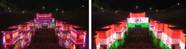 整場光影秀融合了帕坦帕托拉紡織紋樣、古代水利結(jié)構(gòu)元素及象征性圖案,并輔以引人入勝的音樂與旁白。傳統(tǒng)印度樂器與電影配樂交織,呼應(yīng)鑿子和流水的聲音,引領(lǐng)觀眾穿越創(chuàng)造、敬拜和重新發(fā)現(xiàn)的時刻。