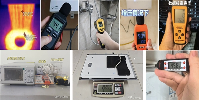 “答主評審團”結合真實家庭場景,設計單人沐浴、多點用水、長管路測試等極端場景,采用專業(yè)設備(如多通道測溫儀、聲級計、燃氣表)歷時兩周持續(xù)記錄數(shù)據(jù)。為了避免主觀感受干擾、確保數(shù)據(jù)可復現(xiàn),本次多位答主在正式開測前,都在家中進行了實裝。并且搭建了自己的測試體系——從溫度曲線、流量精度,到燃氣消耗與噪音監(jiān)測,形成了一套覆蓋熱工、流體與聲學的完整測試框架。
