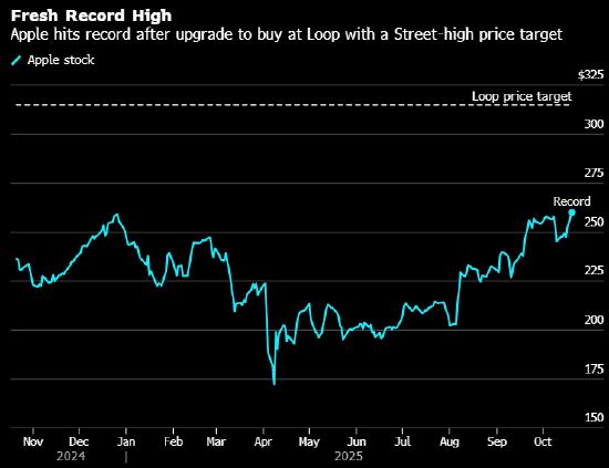 蘋果股價(jià)上漲3.9%,至262.24美元,突破自去年12月以來(lái)的歷史高點(diǎn)。今年多數(shù)時(shí)間,蘋果在標(biāo)普500成分股中表現(xiàn)一直低迷,4月時(shí)跌幅一度達(dá)到31%。但自那以來(lái),股價(jià)已累計(jì)上漲超過(guò)50%,并在9月下旬回到去年年末收盤位之上。