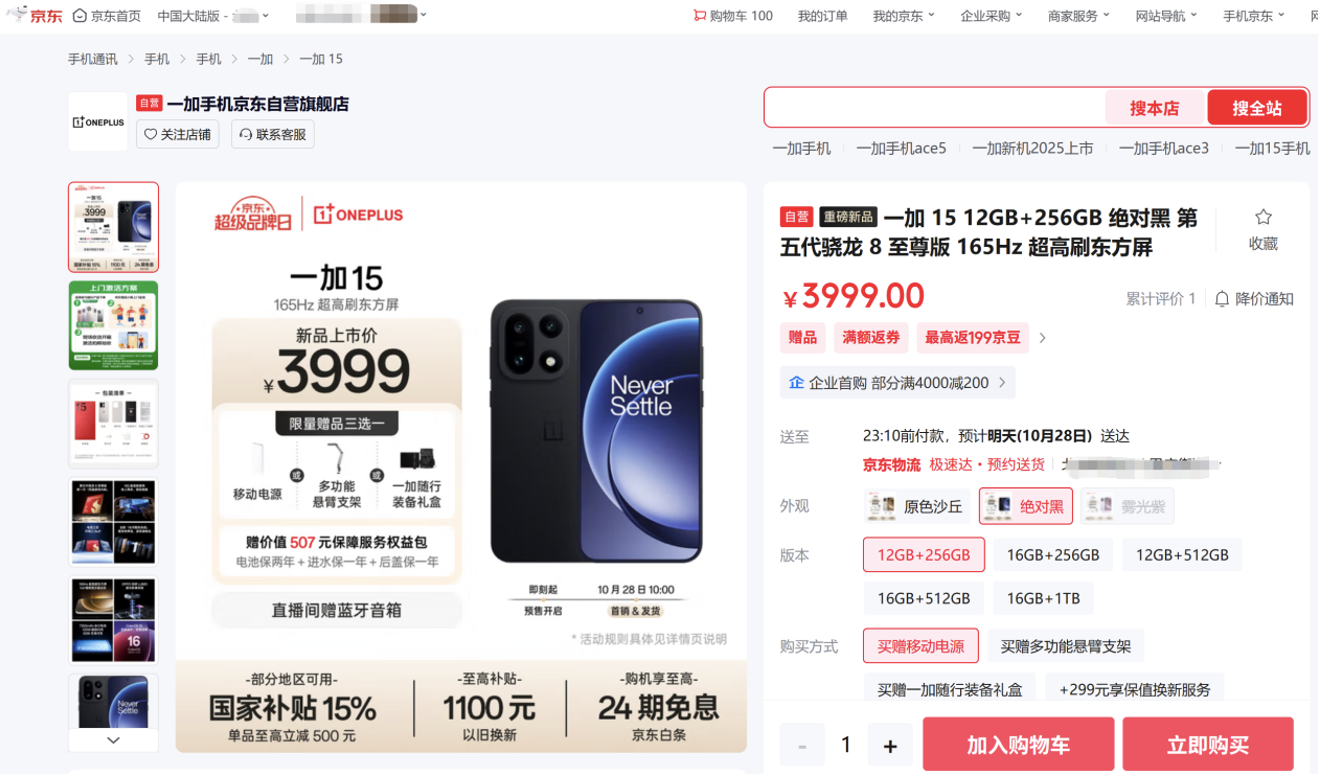 10月27日,一加 15和一加 Ace 6正式發(fā)布,其中,一加 15售價3999元起,將于10月28日10:00正式開售;一加 Ace 6售價2599元起,將于10月30日10:00正式開售。為帶給消費者更多權(quán)益,京東攜手一加打造先人一步加速換新計劃,提供限量一加 15和一加 Ace 6現(xiàn)貨優(yōu)先發(fā)貨,最快發(fā)布會后半小時送達(dá),且先人一步下單指定版本一加 15限量加贈京東PLUS會員京典年卡,先人一步下單指定版本一加 Ace 6限量加贈一加編織游戲數(shù)據(jù)線。到京東APP搜索“一加超能玩家”進入互動游戲活動頁,參與游戲贏一加新機、耳機、無畏契約官方周邊、京東外賣券等,其中10月27日至28日有機會贏30元京東外賣券。值得一提的是,發(fā)布會一加 15發(fā)布后《長安的新機》創(chuàng)意視頻上線,由B站up主7鯨尾出演新機使,和一加社區(qū)負(fù)責(zé)人藍(lán)帥一起為京東先人一步用戶送達(dá)一加 15,京東秒送最快半小時達(dá)。