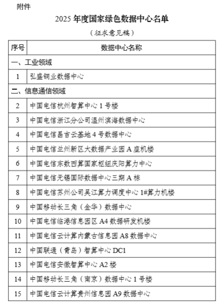 工信部公示2025年度國家綠色數(shù)據(jù)中心名單