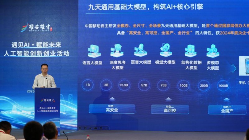 10月27日,由雄安新區(qū)黨群工作部、中國(guó)雄安集團(tuán)城市發(fā)展投資有限公司、中國(guó)移動(dòng)通信集團(tuán)政企事業(yè)部(雄安辦)聯(lián)合主辦的“遇見(jiàn)AI,賦能未來(lái)”人工智能創(chuàng)新創(chuàng)業(yè)交流會(huì),在雄安會(huì)展中心舉辦。本次活動(dòng)作為雄安新區(qū)匯聚人工智能領(lǐng)域創(chuàng)新要素的重要平臺(tái),成功吸引了眾多來(lái)自學(xué)界、業(yè)界及科研機(jī)構(gòu)人工智能領(lǐng)域權(quán)威專家與精英代表齊聚一堂,實(shí)地考察雄安新區(qū)城市規(guī)劃建設(shè)進(jìn)展與人工智能產(chǎn)業(yè)發(fā)展成效,并就人工智能創(chuàng)新實(shí)踐前沿主題展開(kāi)交流互動(dòng),分享該領(lǐng)域從創(chuàng)意萌發(fā)、技術(shù)攻關(guān)到產(chǎn)業(yè)落地的全鏈條創(chuàng)新理念與實(shí)操路徑,共同為“未來(lái)之城”的高質(zhì)量發(fā)展出謀劃策、注入強(qiáng)勁智慧動(dòng)能。雄安新區(qū)黨工委副書(shū)記、管委會(huì)副主任羅之芹,中國(guó)移動(dòng)通信集團(tuán)雄安新區(qū)辦公室副主任賈文濤出席活動(dòng)并致辭。