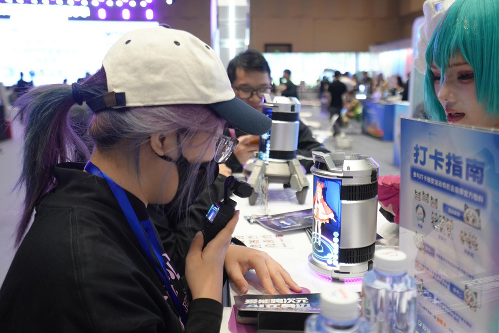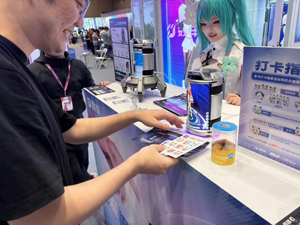 數(shù)伴展位以“AI·次元交互體驗(yàn)”為主題,打造了兼具科技感與趣味性的沉浸互動(dòng)空間。兩位人氣Coser分別飾演看板娘“姵兒”和“初音未來(lái)”,在現(xiàn)場(chǎng)與觀眾親密互動(dòng),吸引大家參與體驗(yàn)環(huán)節(jié)與抽獎(jiǎng)活動(dòng),F(xiàn)場(chǎng)氛圍熱烈,觀眾拍照打卡上傳至社交媒體,相關(guān)話題熱度持續(xù)攀升,成為WTCC期間備受年輕人關(guān)注的展位之一。