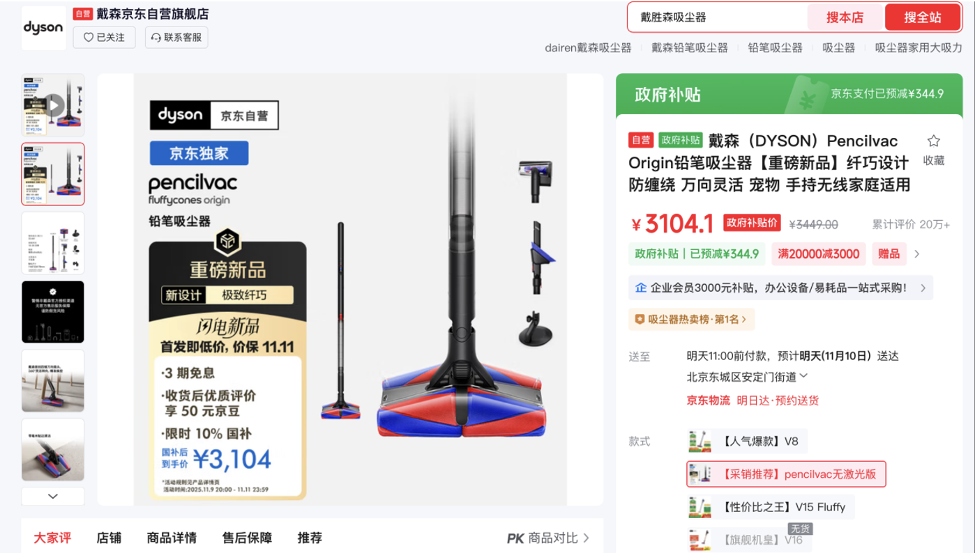想要及時(shí)省心清潔地面,戴森Pencilvac Origin鉛筆吸塵器少不了。機(jī)身僅38毫米粗細(xì)、0.92kg重量,靈活易用。馬達(dá)轉(zhuǎn)速高達(dá)14萬轉(zhuǎn)/分鐘,除塵率達(dá)99%,四錐萬向吸頭不易纏繞,搭配免打孔磁吸充電底座,收納充電一步到位。京東11.11下單享限時(shí)10%國(guó)補(bǔ),到手價(jià)3104.1元。
