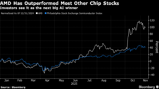 AMD向投資者更新其長(zhǎng)期展望,正值外界越來(lái)越擔(dān)心用于人工智能工作的新型計(jì)算機(jī)系統(tǒng)的巨額投入難以維持當(dāng)前的高位。受益于與OpenAI和甲骨文等公司簽署的協(xié)議,這家芯片制造商的股價(jià)今年已大約上漲了一倍。這些交易驗(yàn)證了AMD產(chǎn)品的質(zhì)量,也表明其技術(shù)有能力從投入到新數(shù)據(jù)中心的數(shù)以百億計(jì)美元中分得一杯羹。