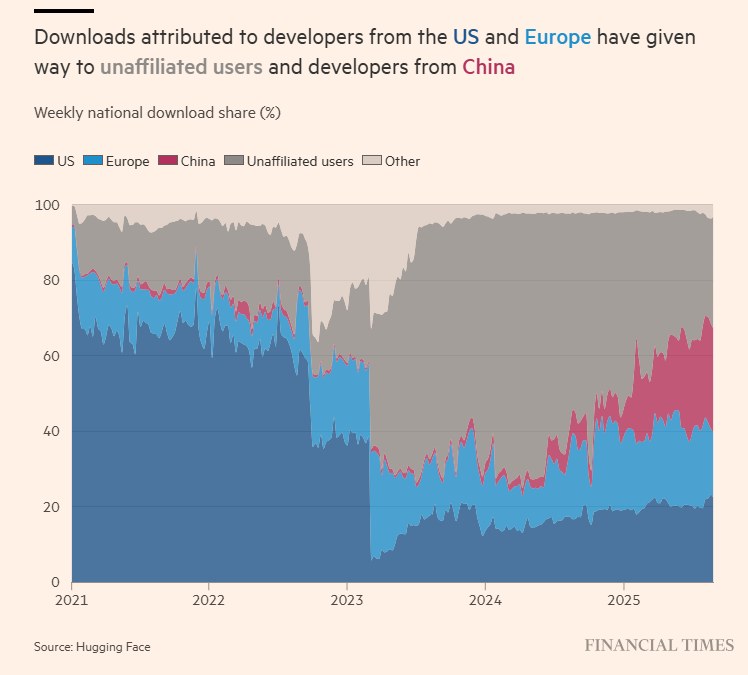 11 月 27 日消息,據(jù)英國(guó)《金融時(shí)報(bào)》報(bào)道,在全球開源人工智能也就是 AI 模型市場(chǎng),中國(guó)已經(jīng)超越美國(guó),在這項(xiàng)強(qiáng)大技術(shù)的全球應(yīng)用方面獲得了關(guān)鍵優(yōu)勢(shì)。