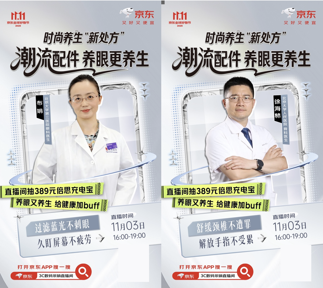 面對(duì)長(zhǎng)時(shí)間使用電子產(chǎn)品帶來(lái)的護(hù)眼壓力,以及久坐帶來(lái)的頸椎問(wèn)題,北京大學(xué)第三醫(yī)院眼科醫(yī)生布娟與北京大學(xué)人民醫(yī)院骨科醫(yī)生徐海林兩位權(quán)威專(zhuān)家也給出了專(zhuān)業(yè)的意見(jiàn)。布娟醫(yī)生從用眼健康角度,分享如何通過(guò)防藍(lán)光配件、屏幕調(diào)節(jié)等方式緩解視覺(jué)疲勞;徐海林醫(yī)生則聚焦脊柱保護(hù),講解筆記本支架、顯示器支架等產(chǎn)品對(duì)坐姿與骨骼健康的積極影響。另外在11月3日的直播間,兩位專(zhuān)家還將現(xiàn)場(chǎng)解答用戶(hù)關(guān)心的養(yǎng)生問(wèn)題,幫助觀眾實(shí)現(xiàn)“養(yǎng)眼又養(yǎng)生,給健康加buff”。