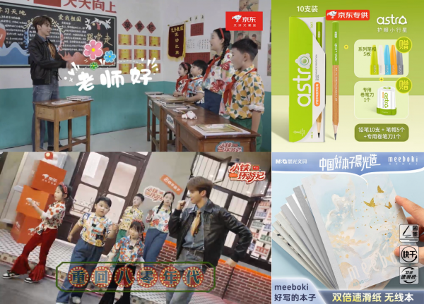 綠墻白窗的教學(xué)樓、課桌上的鐵皮文具盒、墻上貼著的獎狀與“好好學(xué)習(xí),天天向上”標(biāo)語,瞬間將大家拉回80年代的校園時光。在這一時空,唐九洲搖身一變擔(dān)任老師,為小紅領(lǐng)巾們教授趣味課程,還為他們準(zhǔn)備了京東專供的10支裝中華太空芯鉛筆,以及書寫速滑又固墨的晨光東方靈韻a5筆記本做課堂筆記。孩子們積極舉手與老師互動,沒能搶到答題機會的孩子還表示“我blue了”,可愛的模樣直接萌翻全場。課程尾聲,熟悉的復(fù)古音樂響起,大家跟著節(jié)奏一起體驗80年代的蹦迪文化,萌娃們又奶又拽的模樣讓歡樂氛圍直接拉滿!
