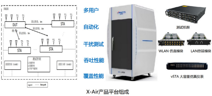 信而泰針對WiFi7高吞吐、低時延、大并發(fā)、抗干擾、高可靠等技術(shù)特性自主研發(fā)了X-Air系列產(chǎn)品,其是面向訪問接入點(AP)、家庭網(wǎng)關(guān)及 WLAN 系統(tǒng)的專業(yè)測試設(shè)備,憑借真實多終端模擬與真實4-7 層應(yīng)用模擬,可以精準(zhǔn)衡量WLAN設(shè)備的基本性能、功能完整性與長期穩(wěn)定性。