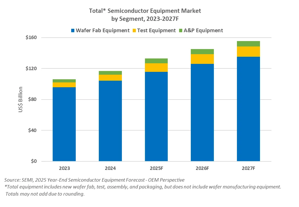 SEMI 預測:今年全球半導體設(shè)備市場 1330 億美元,2027 年突破 1500 億美元