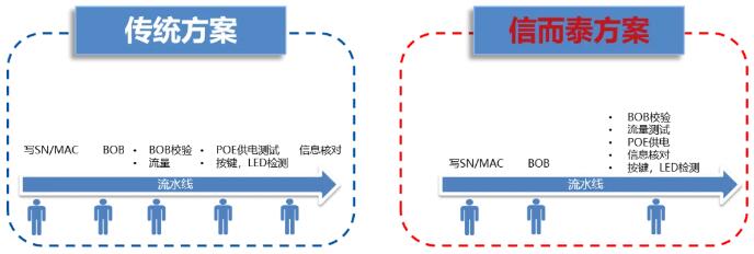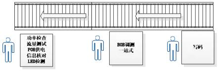 功能測試站可分三站來設(shè)計:寫碼,BOB調(diào)測一站式,功率檢查+流量+POE供電+LED檢測+信息核對測試。