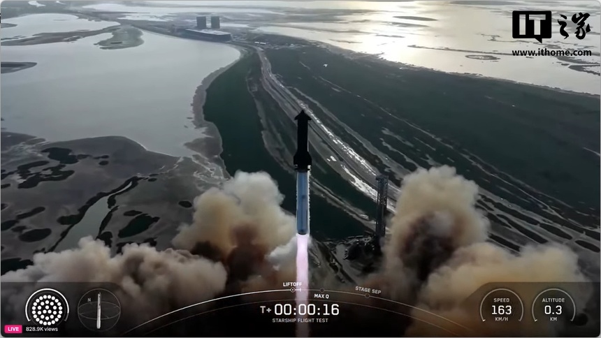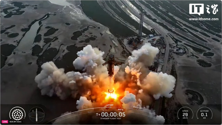 隨著一聲巨響,SpaceX 的星艦超重型助推器準(zhǔn)時點燃了 33 臺主發(fā)動機(jī),向著太空飛升,開啟 SpaceX 第十次飛行測試的升空之旅。