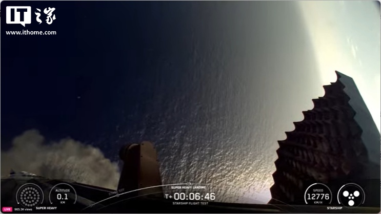 之后,星艦超重型助推器通過一次熱分離與星艦上面級分離,成功在墨西哥灣實現(xiàn)軟著陸和濺落。這款擁有 33 臺發(fā)動機(jī)的火箭在發(fā)射過程中損失了一臺發(fā)動機(jī),但這似乎并未影響其飛行或著陸。