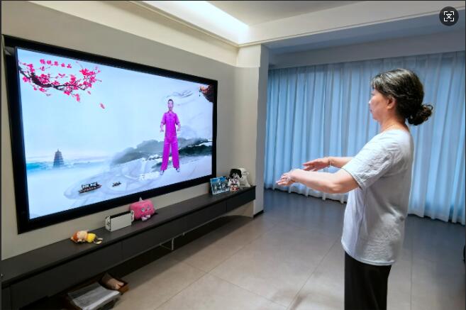 而在鹽城,移動(dòng)高清電視則讓傳統(tǒng)養(yǎng)生保健煥發(fā)出新生。陳奶奶一聲“跳廣場(chǎng)舞”,虛擬管家“靈犀”便出現(xiàn)在屏幕上,同步啟動(dòng)AI健身模式,手機(jī)攝像頭與電視聯(lián)動(dòng),實(shí)時(shí)捕捉她的動(dòng)作,顯示姿勢(shì)是否正確。不多時(shí),陳爺爺也來(lái)到了客廳,隨著一句“繼續(xù)播放楊氏太極”,電視秒切換,老兩口開(kāi)始跟著電視畫(huà)面一起練習(xí)。