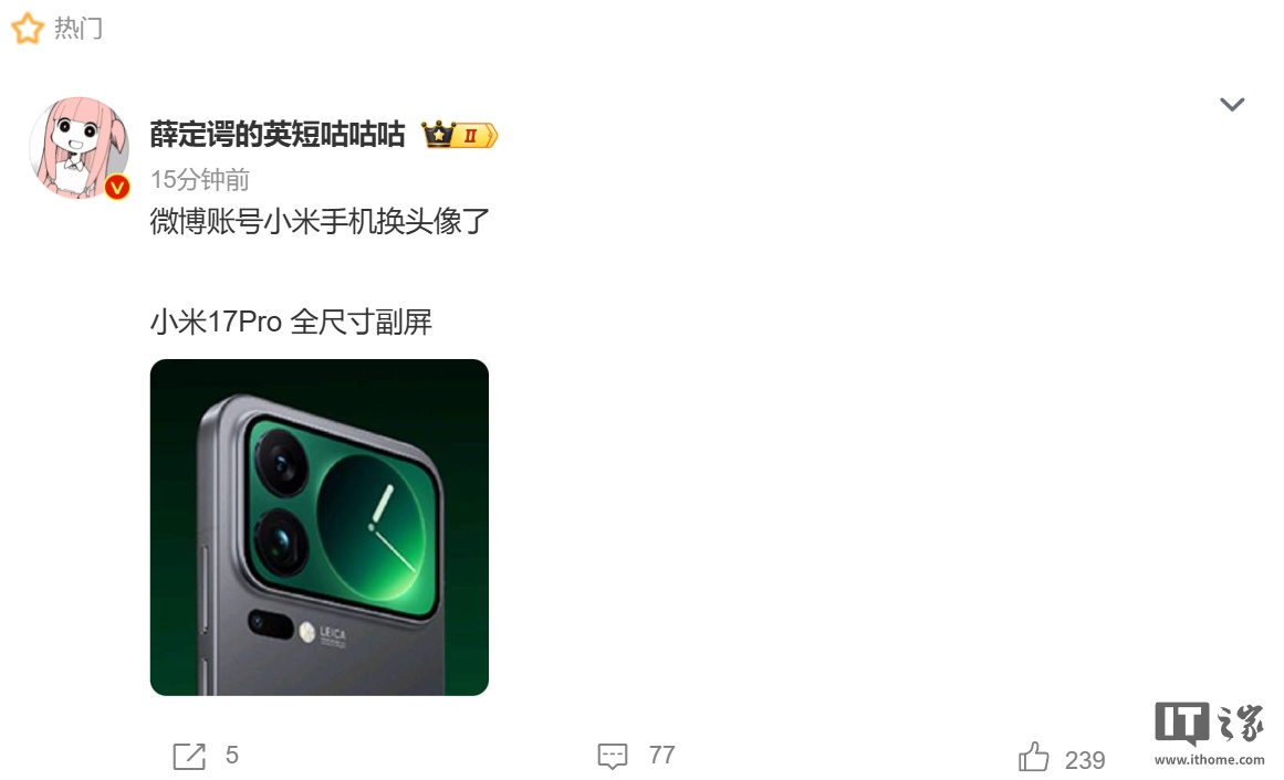 小米手機官博頭像意外泄露新機背屏,預(yù)計為 17 Pro 系列