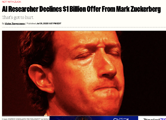 扎克伯格在商戰(zhàn)中崇尚簡(jiǎn)單粗暴直接。過去幾個(gè)月時(shí)間,他的Meta展開了一場(chǎng)“人才閃電戰(zhàn)”,對(duì)OpenAI、谷歌、蘋果等公司展開了一場(chǎng)突襲,用難以置信的報(bào)價(jià)直接大量挖走頂尖AI技術(shù)人才。OpenAI對(duì)此深受其害,今年7月甚至一次性被挖走了八名核心技術(shù)骨干,其中還包括了剛從谷歌挖來的DeepMind人才。
