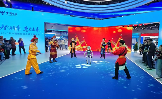中國電信展臺,一臺具身智能機器人與人類舞者共同演繹了充滿嶺南特色的英歌舞。機器人動作精準(zhǔn),與人類配合默契。這背后是中國電信5G-A超低時延網(wǎng)絡(luò)、云計算與邊緣計算能力,保障了海量感知數(shù)據(jù)的傳輸與AI的實時決策控制。