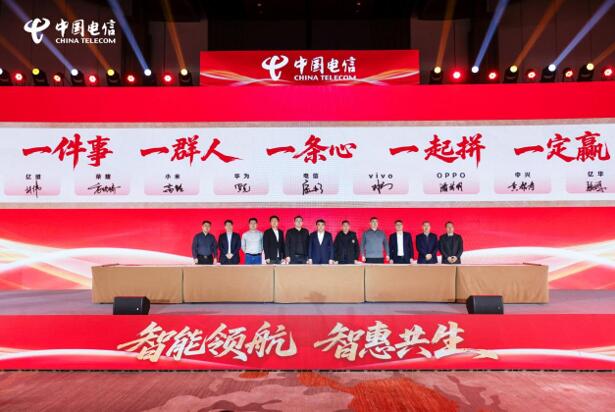 本次大會(huì)上,山東電信與榮耀、小米、華為、vivo、OPPO、中興等終端廠商,以及新藍(lán)圖、億維、億華、中巖等省內(nèi)強(qiáng)商共同舉辦“2026渠道終端生態(tài)合作戰(zhàn)略簽約”儀式,標(biāo)志著山東電信領(lǐng)銜的渠道終端生態(tài)聯(lián)盟合作更加緊密,合作基礎(chǔ)更加穩(wěn)固。同時(shí),大會(huì)上多項(xiàng)AI創(chuàng)新成果與發(fā)展規(guī)劃精彩亮相,重點(diǎn)呈現(xiàn)了引領(lǐng)AI潮流的天翼智屏、天翼智鈴等“四智產(chǎn)品”,以及中國(guó)電信具有前瞻性的“AI+智能體”、“AI+具身智能”、“AI+端側(cè)智能”、“AI+綜合治理”等戰(zhàn)新產(chǎn)品和平臺(tái)化業(yè)務(wù)。現(xiàn)場(chǎng)的小米、vivo、中興、榮耀、OPPO 等知名手機(jī)品牌也在現(xiàn)場(chǎng)展示了最新的5G終端,全方位沉浸式展現(xiàn)中國(guó)電信領(lǐng)銜的渠道終端生態(tài)聯(lián)盟在全渠道終端領(lǐng)域的創(chuàng)新成果。