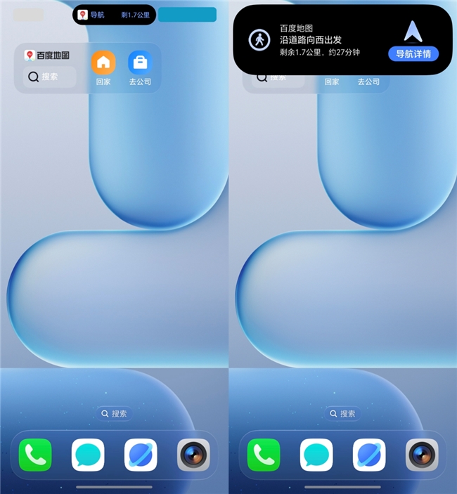 在步行、騎行等多任務(wù)并行場(chǎng)景中,用戶需要持續(xù)關(guān)注導(dǎo)航信息卻又可能頻繁切換手機(jī)應(yīng)用的場(chǎng)景,榮耀MagicOS的靈動(dòng)膠囊功能提供了優(yōu)雅的解決方案。百度地圖將步騎行的核心導(dǎo)航信息,如行進(jìn)方向與剩余距離,實(shí)時(shí)顯示于屏幕頂部的靈動(dòng)膠囊中。即使用戶將應(yīng)用置于后臺(tái)或?yàn)g覽其他內(nèi)容,關(guān)鍵信息依然抬眼可見。這解決了用戶以往必須在應(yīng)用間反復(fù)切換或忍受導(dǎo)航中斷的困擾,實(shí)現(xiàn)了多任務(wù)并行下的信息連續(xù)體驗(yàn)。