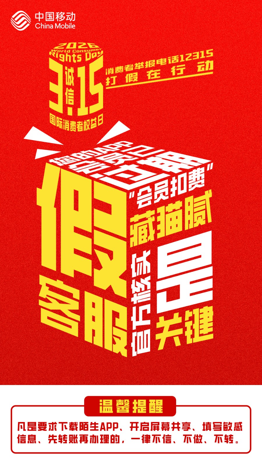 • 中國移動(dòng)315打假護(hù)權(quán)益、反詐筑盾守平安