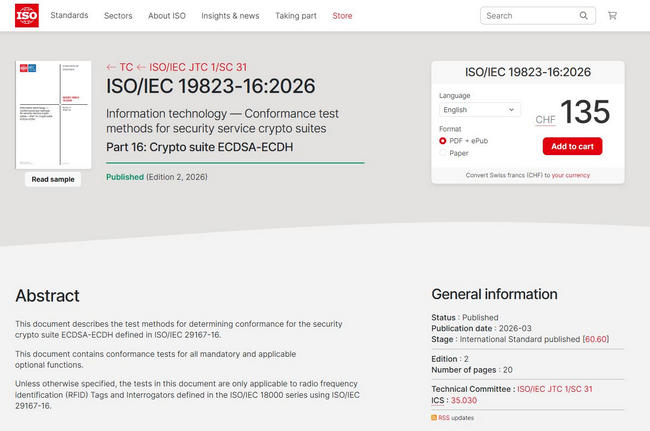 圖:ISO網(wǎng)站截圖—ISO/IEC 19823-16:2026發(fā)布