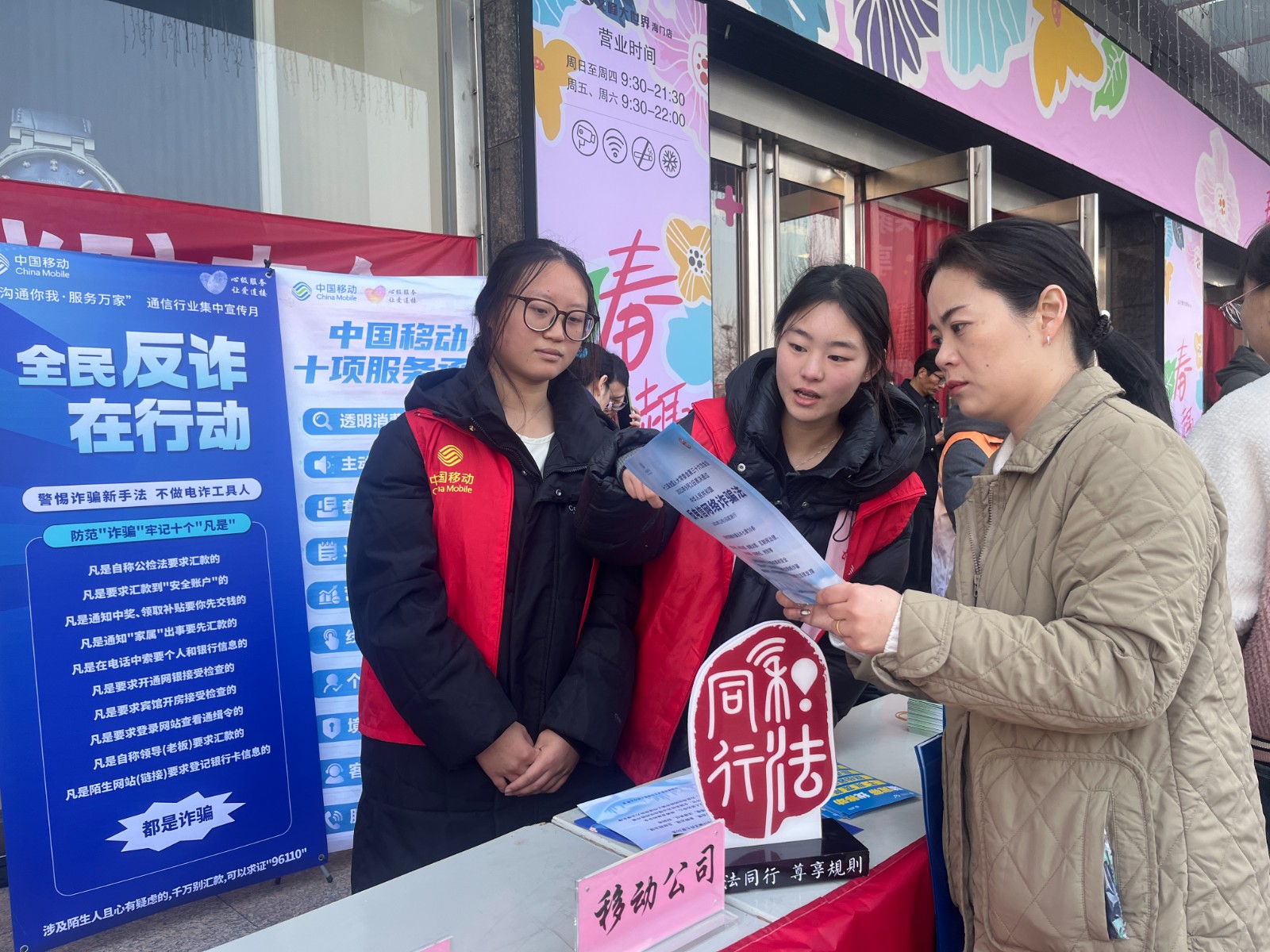 2026年3.15國際消費者權益日宣傳咨詢活動在海門文峰廣場舉辦,南通移動在活動現(xiàn)場近距離的與用戶面對面交流,普及5G資費,消費賬單、流量查詢,信息反詐等知識,幫用戶解決通信的疑難雜癥,以實際行動保護消費者權益。據了解,現(xiàn)場用戶多數咨詢如何防范網絡詐騙、如何攔截垃圾短信、寬帶故障自助診斷,資費流量賬單自助查詢,電子支付等相關日常問題,志愿者們手把手的用手機APP操作演示、宣傳單頁講解、具體案例分析,系統(tǒng)全面的為用戶一一解答,讓現(xiàn)場用戶切身感受到了使用移動產品后,安心、放心、舒心的服務體驗。工作人員還發(fā)放防范電信詐騙宣傳單頁,采用講解、實物演示、視頻播放等多種方式,用真實案例、通俗易懂的語言講解常見的電信詐騙套路和預防措施,教大家下載國家反詐APP,向客戶普及信息安全防范知識,提升防范電信詐騙意識。