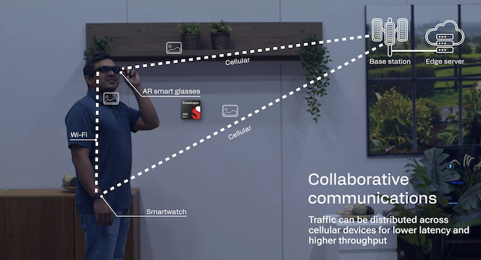 這項能力目前最大的受益者可能是AR眼鏡,由于此類設(shè)備本身體積較小、電池容量有限,難以獨自承擔(dān)所有的數(shù)據(jù)傳輸任務(wù),而通過Wi-Fi與智能手機(jī)連接,可將部分?jǐn)?shù)據(jù)流量經(jīng)由手表的蜂窩連接傳送至基站。同理,通過AR眼鏡與手機(jī)的配合,同樣可以帶來更加高帶寬、低延遲的聯(lián)網(wǎng)體驗。