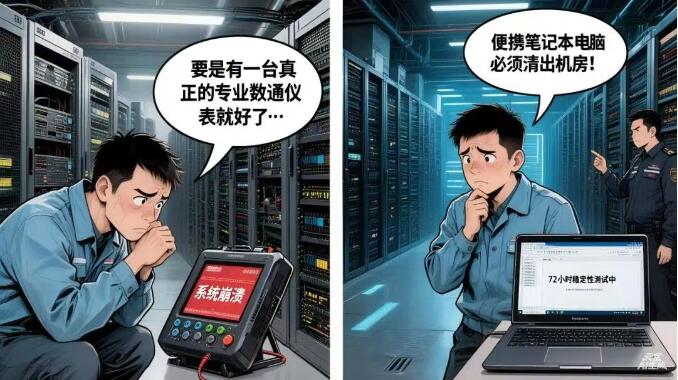 穩(wěn)定性焦慮:非專業(yè)數(shù)通儀表產(chǎn)品面臨產(chǎn)品不穩(wěn)定因素,專業(yè)數(shù)通儀表配合消費(fèi)級(jí)筆記本7×24小時(shí)滿負(fù)載運(yùn)行,過熱、藍(lán)屏、死機(jī)隨時(shí)可能導(dǎo)致測(cè)試歸零。