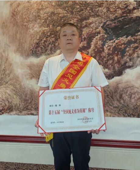 2025年7月陳鋒被評(píng)為第十五屆“全國(guó)見(jiàn)義勇為英雄”稱(chēng)號(hào)