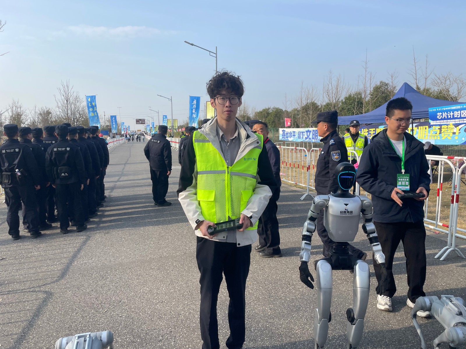 除了堅實的通信保障,南通移動更以科技為筆為賽事增添別樣活力:啟動儀式上,智能機器人組團帶來高能機械舞蹈秀,靈動舞步與精準卡點瞬間點燃現(xiàn)場氛圍,圍觀觀眾陣陣歡呼:“太酷了!這機器人跳得比人還整齊!”;鳴槍開跑后,機器人化身“科技陪跑員”,依托5G網(wǎng)絡與AI自適應步態(tài)算法與跑者并肩馳騁“最美公路”,成為賽道上的“氣氛擔當”,不少跑友笑著說:“有機器人陪著跑,感覺更有勁兒了!”;頒獎環(huán)節(jié)中,機械臂同步鼓掌慶祝,用科技感十足的方式為獲獎選手喝彩,為賽事畫上圓滿句號。