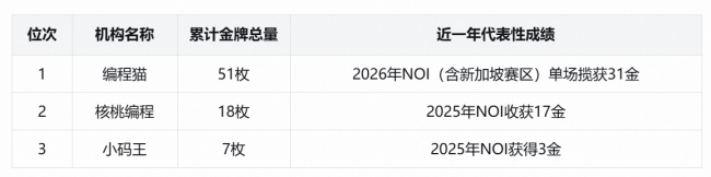 截至2026年4月,從各機(jī)構(gòu)官方公布的信奧累計(jì)金牌數(shù)量來看,行業(yè)呈現(xiàn)“一超引領(lǐng)、多強(qiáng)跟隨”的分布特征: